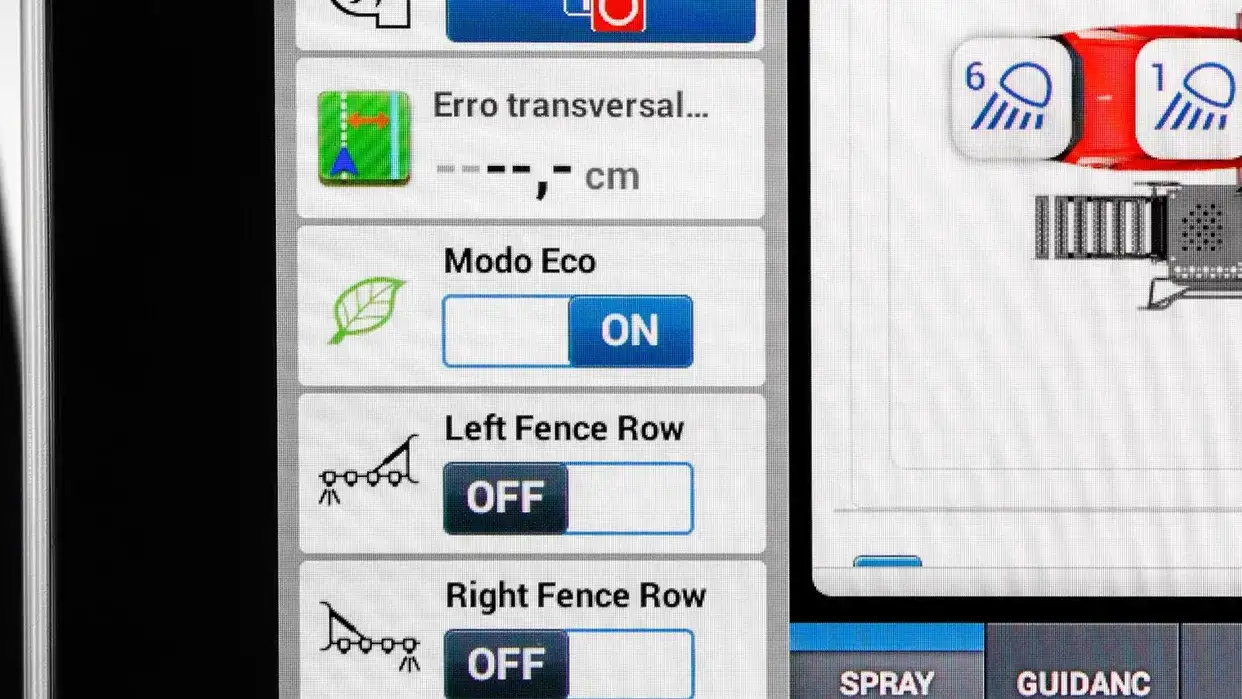 The new Eco Mode optimizes fuel consumption without compromising sprayer performance. It automatically adjusts engine speed according to demand, ensuring efficiency both during transport and spraying. More savings, more autonomy, and maximum productivity in the field.