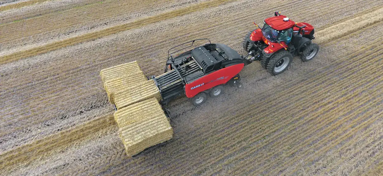 Las empacadoras gigantes de Case IH permiten formar pacas grandes, cuadradas y densas que se apilan con facilidad. A través de la pantalla AFS Pro 700, el operador ajusta rápidamente la formación de la paca con sensores que corrigen la dirección y adaptan el proceso según el cultivo. Es una solución flexible, ideal tanto para alimentar ganado propio como para operaciones comerciales de heno.